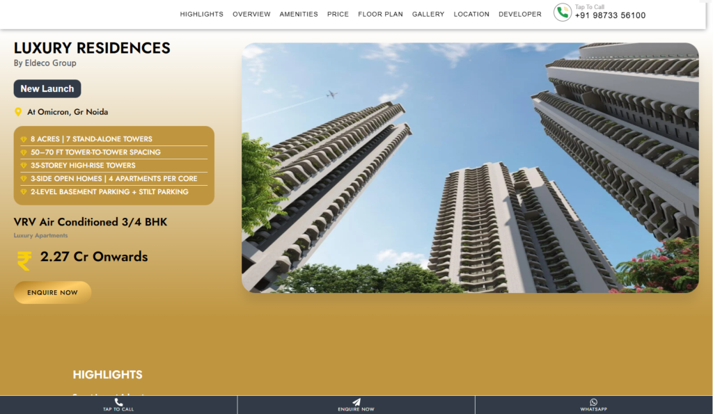 Eldeco enjoys a strong brand reputation in cities such as Lucknow, Kanpur, Agra, Greater Noida, Noida, and Gurgaon, where its name is synonymous with quality and reliability. The Group is also developing landmark projects in Panipat, Sonipat, Ludhiana, Jhansi, Bareilly, Panchkula, Neemrana, Delhi, Kasauli, Rudrapur, Gorakhpur, Rishikesh, and Jalandhar.